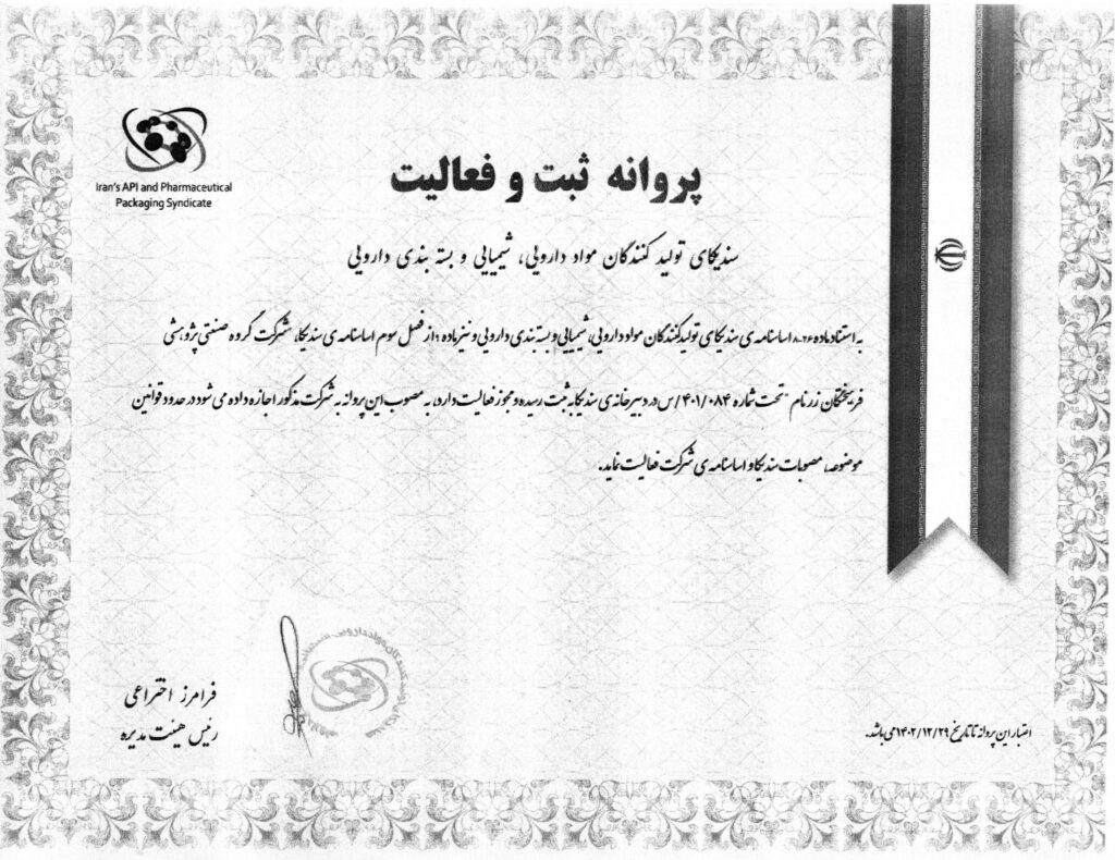 در نیمه دوم سال 1379 جمعی از پیشکسوتان این عرصه اقدام به برگزاری جلساتی مستمر جهت ایجاد تشکلی صنفی نمودند وپس از ماهها مطالعه و بررسی جوانب مختلف این امر، هیئت موسسان سندیکا تشکیل و اقدام به ثبت رسمی این تشکل نمودند که در نهایت پس از تصویب اساسنامه سندیکای تولید کنندگان مواد اولیه داروئی و شیمیایی در مورخ 1380/6/6 و با شماره 151 در اتاق بازرگانی صنایع و معادن ایران به ثبت رسید، که به سبب درخواست تعدادی از شرکت های بسته بندی دارویی تغییر یافت.